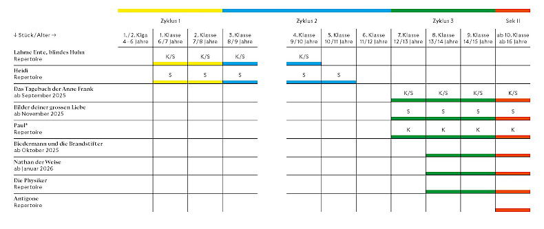 Der folgenden Übersicht können Sie unsere Stücke im Repertoire nach Altersstufen entnehmen: